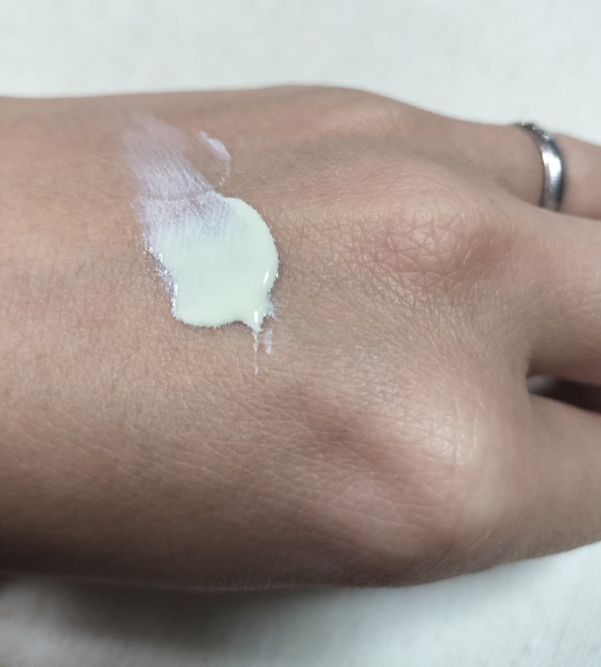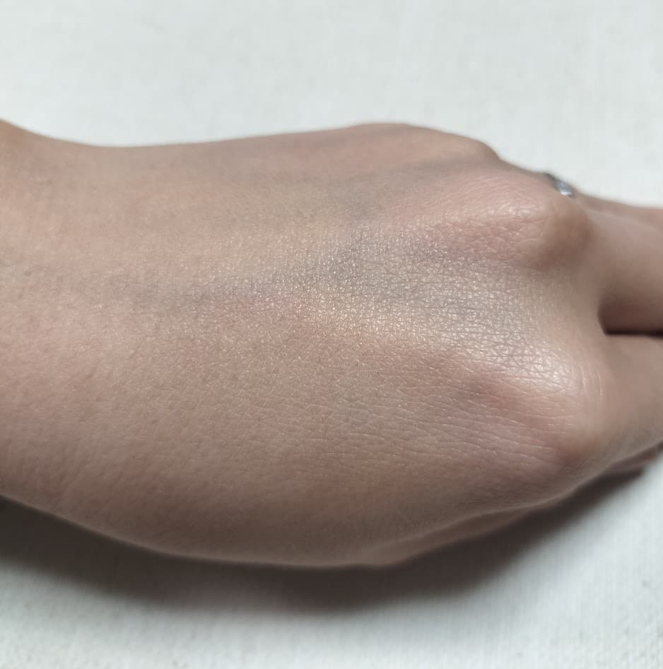 塗り広げた後の手の甲。自然に馴染んで、肌がワントーン明るくなりました!